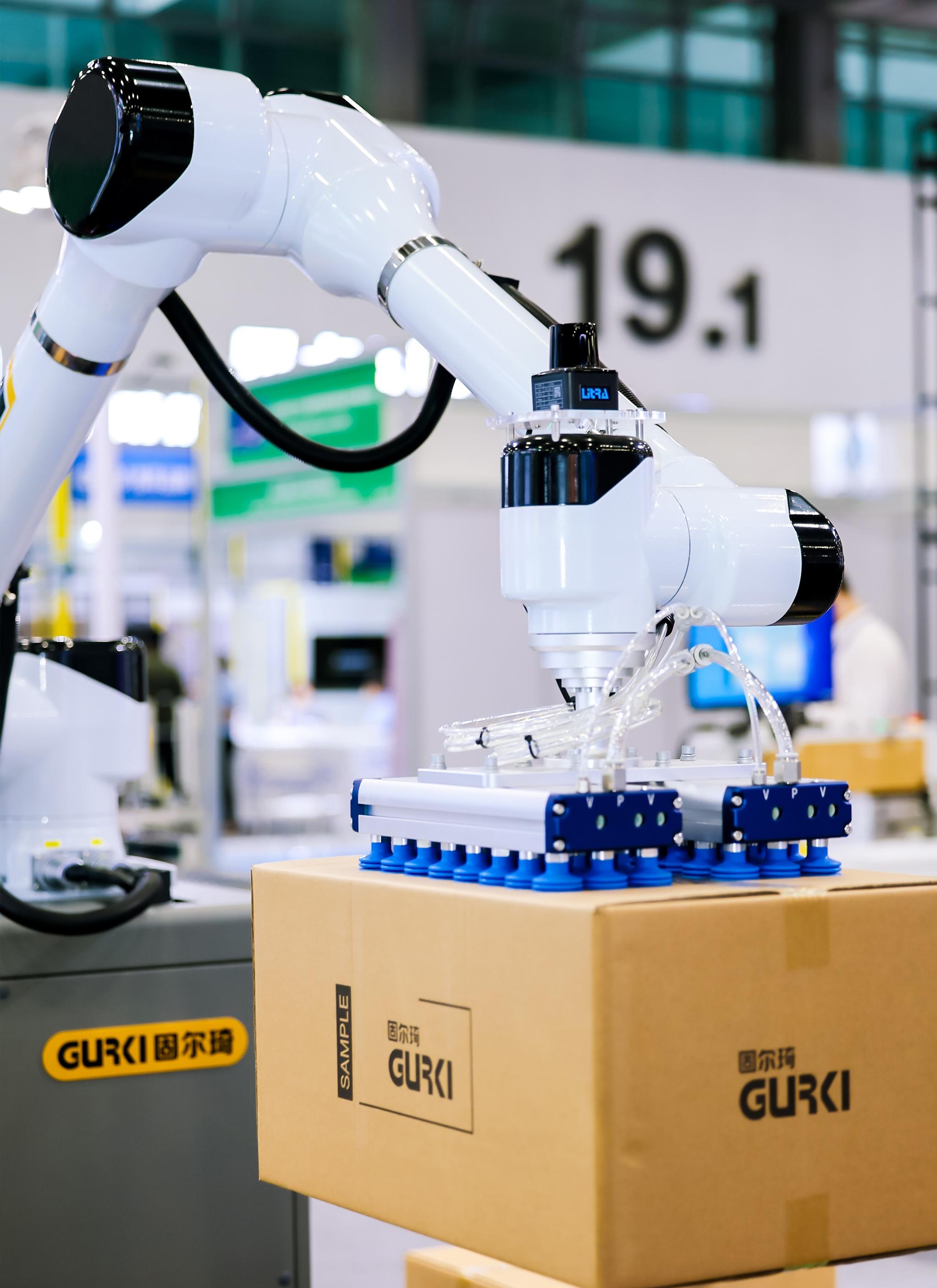本次展會,固爾琦聚焦“高效、柔性、智能”三大關(guān)鍵詞,展示了覆蓋倉儲分揀、智能打包、協(xié)作機(jī)器人碼垛等環(huán)節(jié)的標(biāo)桿性設(shè)備,打造從商品入庫到出庫的全鏈路智能化作業(yè)流程。