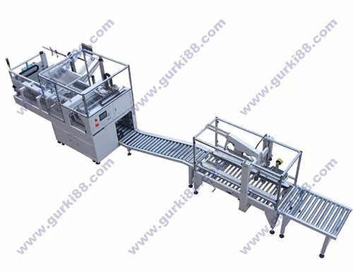 皮革廠包裝的好幫手,全自動(dòng)折蓋封箱機(jī)連接碼垛機(jī)省錢又快速!