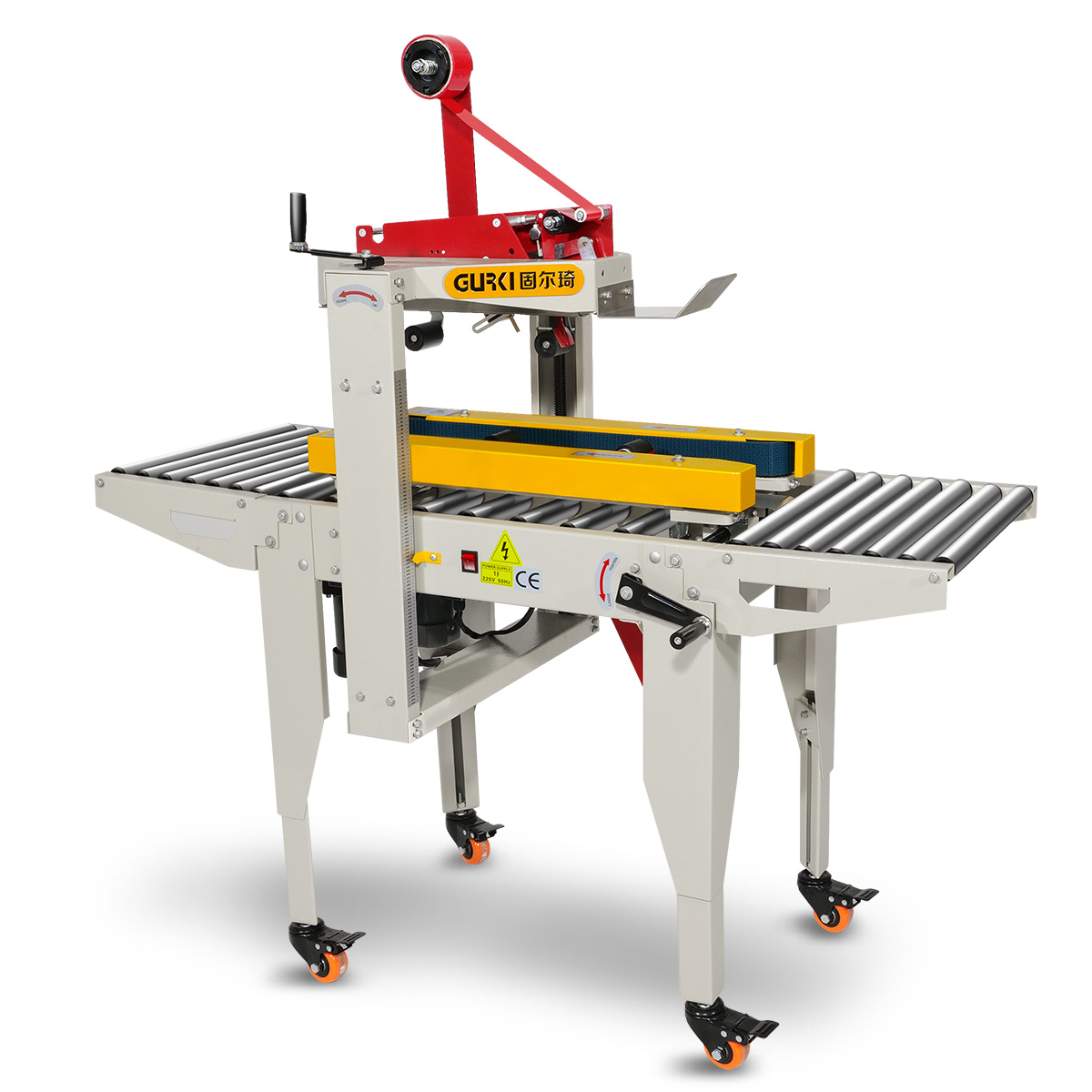 固爾琦小編今天給大家?guī)?lái)一款GPC-50D型號(hào)封箱機(jī),GPC-50D封箱機(jī)是自動(dòng)折上蓋,上下自動(dòng)貼上膠帶,無(wú)需人手作業(yè);