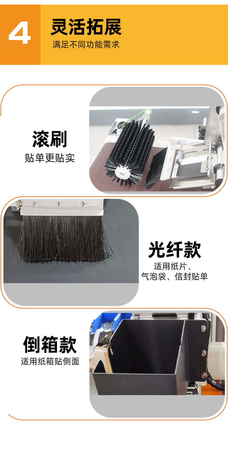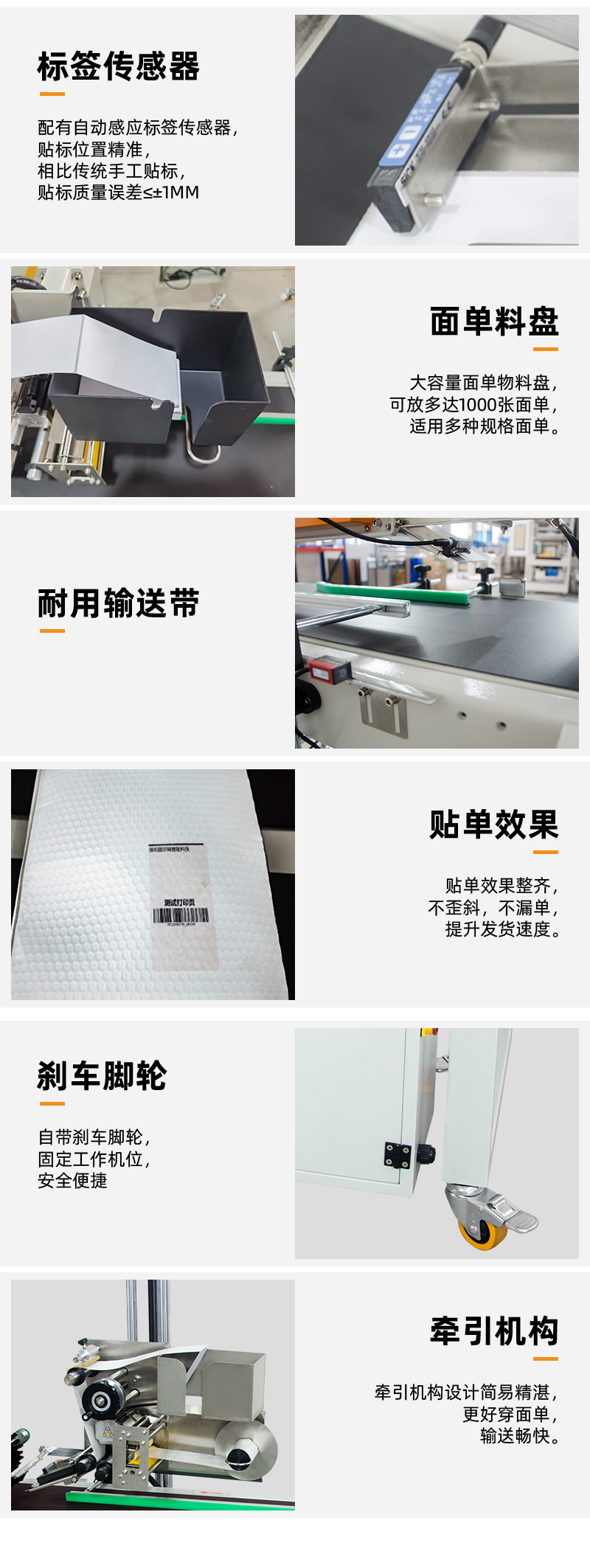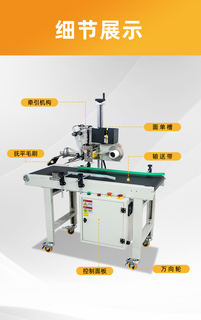 自動快遞貼單機是我司自主設(shè)計生產(chǎn)的一款24小時無人化連續(xù)貼單作業(yè)的設(shè)備,該機具有一鍵啟動,傻瓜式操作的特點,日貼3萬+,操作使用體驗更好。同時,該機針對信封等較薄的證件貼面單,設(shè)有光纖傳感器,方便更加快速貼單,適用于貼各種規(guī)格的大小紙箱、快遞面袋等,可實現(xiàn)打印快遞面單后,產(chǎn)品一邊輸送一邊貼單,貼單平實、貼單位置精準,不傾斜,精度誤差≤±1mm??蓡螜C使用也可配套封箱機使用,廣泛應(yīng)用于倉儲、物流、電商等行業(yè)。