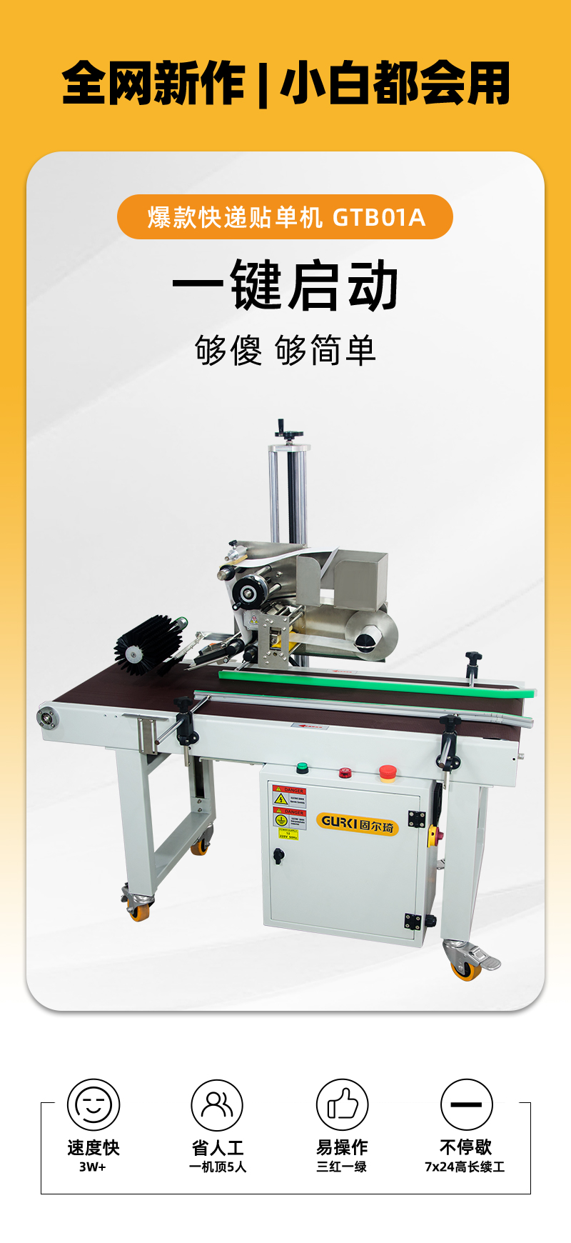 電商封箱機配套快遞貼面單機,封箱貼面單效率日發(fā)8000+。具備一鍵式傻瓜操作,自動化封箱貼面單一步完成,保養(yǎng)簡單,穩(wěn)定性強的特點