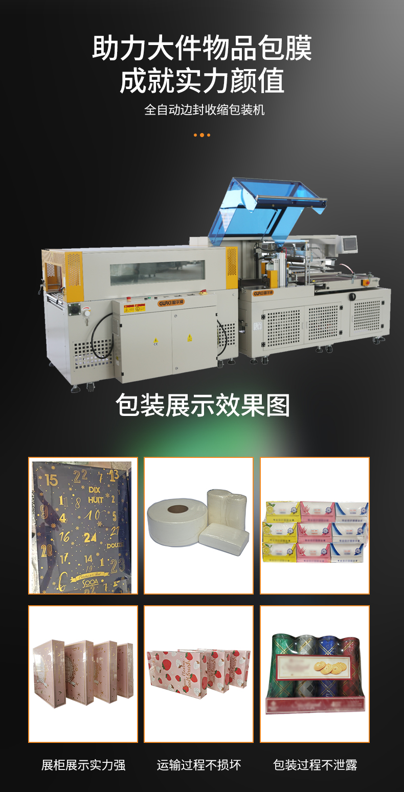 全自動邊封收縮包裝機是一款非標定制產(chǎn)品,整機配有PLC程序系統(tǒng),采用光電對產(chǎn)品進行自動偵測,根據(jù)產(chǎn)品自動調(diào)節(jié)送料長度,自動對產(chǎn)品進行封切收縮,檢測開關(guān)控制電機自動卷收廢膜。從而實現(xiàn)無人化自動包膜的特點,該機工作效率高,針對不同大小的產(chǎn)品,速度為每分鐘1-20件,該款封切收縮包裝機也適用于印刷、彩盒、醫(yī)藥、日化、汽配、食品等行業(yè)。