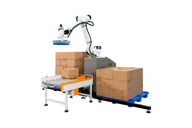 協(xié)作機器人碼垛,與人類工作人員緊密合作,提高生產效率、靈活適應不同任務。安全配備傳感器,為工作人員創(chuàng)造更安全高效的工作環(huán)境,外形精巧美觀,調整方便簡單,本設備采用觸控屏操作,實現(xiàn)智能化操作管理,簡便、易掌握??纱蟠蟮販p少勞動人員和降低勞動強度。可獨立使用也可配套自動供棧機和棧板輸送機來實現(xiàn)全自動碼垛系統(tǒng),廣泛應用于多個行業(yè)的碼垛工序,如紙箱類、醫(yī)藥類、日用品、食品、飲料、化妝品、金屬制品等。
