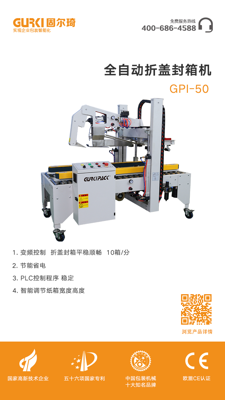 全自動折蓋封箱機自動折蓋封箱,封箱作業(yè)一氣呵成,可配合自動化包裝機械系列使用。且能替代人工,提高生產(chǎn)效率,降低成本,可節(jié)省5-10%耗材。該款折蓋封箱機廣泛應用于食品、醫(yī)藥、飲料、煙草、日化、汽車、線纜、電子行業(yè)。