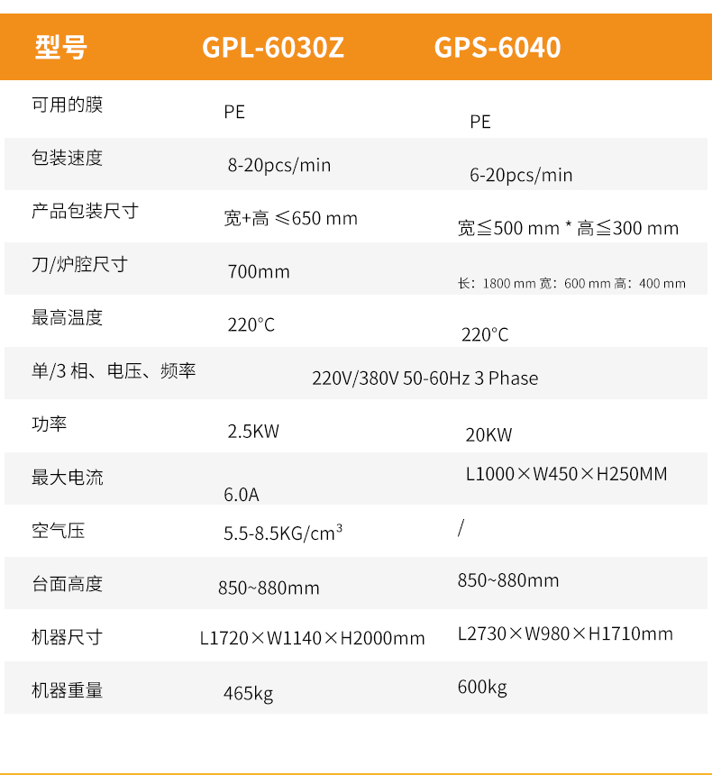 | 型號 | GPL-6030Z | GPS-6040 |